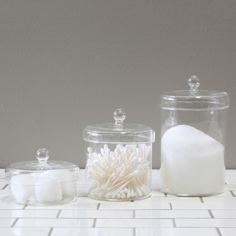 Utility Jars are stylish and versatile. They can be used in kitchen for dry goods and in the bathroom for cotton balls or bath salts. The utility Jars include stoppers but are not air tight. Hand washing is recommended. Dimensions: 4 x 4 x 5