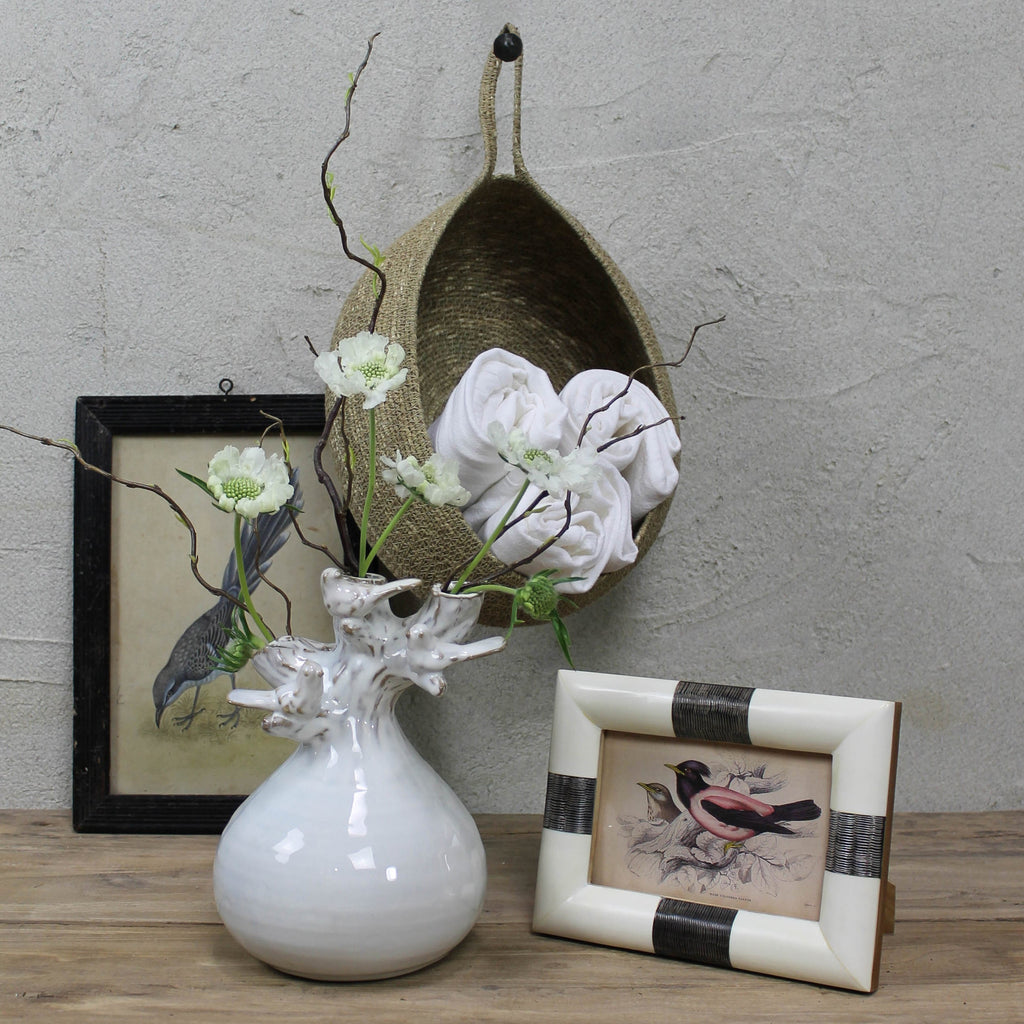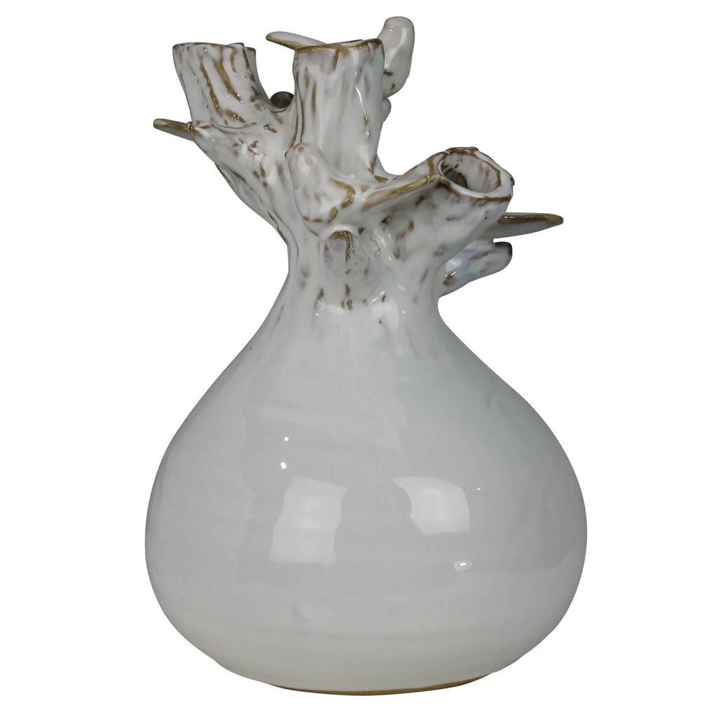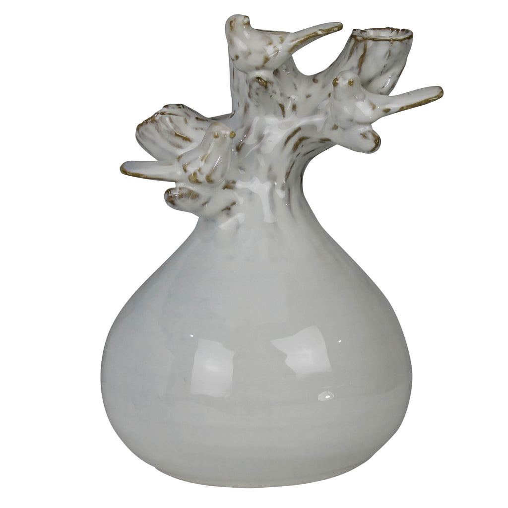 White ceramic vase featuring an elegant branch and bird design. The delicate details bring a touch of nature to your décor, creating an artistic focal point. Ideal for floral arrangements or as a stand-alone piece, it adds charm to any space. .Dimensions: 7 x 6 x 9