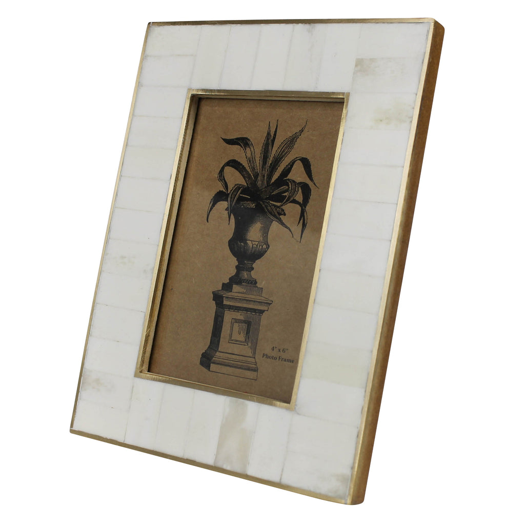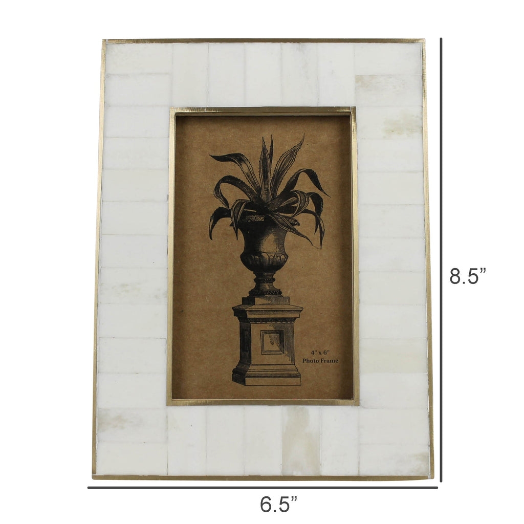 Printed photo memories have found their home in this unique of picture frame. Thoughtfully designed in mixed materials and eye-catching textures you will want to amass them and let their stunning features play off one another. .Dimensions: 6.5 x 0.5 x 8.5