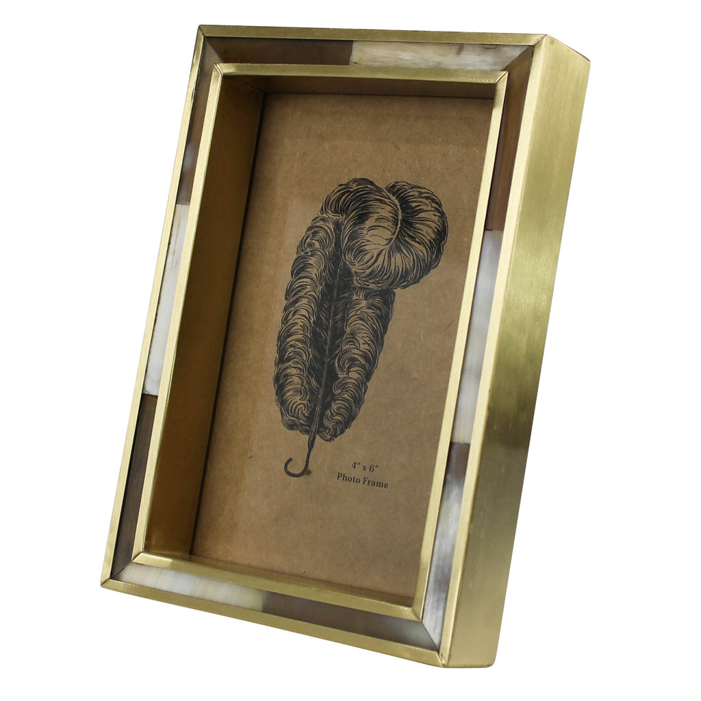 Printed photo memories have found their home in this unique of picture frame. Thoughtfully designed in mixed materials and eye-catching textures you will want to amass them and let their stunning features play off one another. .Dimensions: 4.75 x 0.5 x 6.75